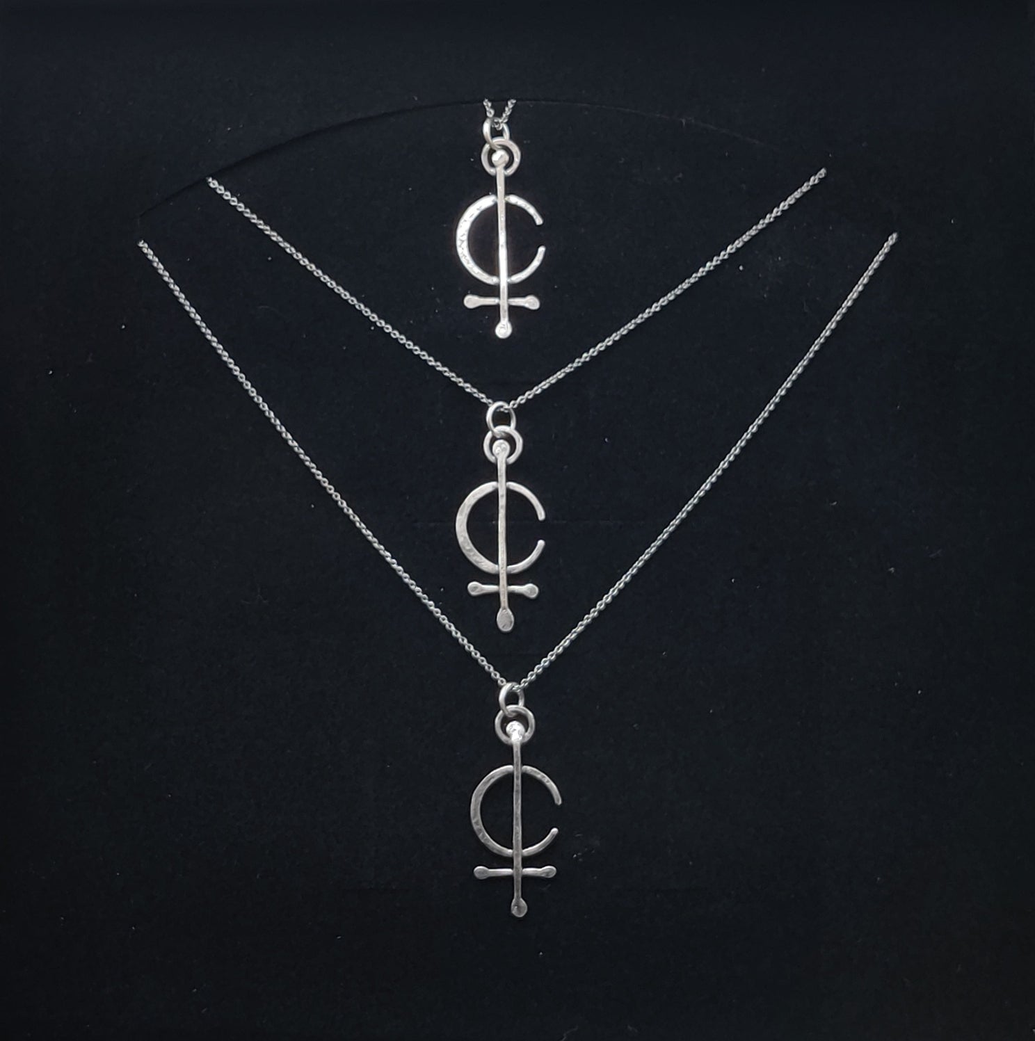 Handgjort halsband i äkta 925 sterlingsilver med hänge format som ett sigill. Den rena kombinationen av cirkel och linje framhäver balans och fokus med en känsla av uråldrig symbolik.